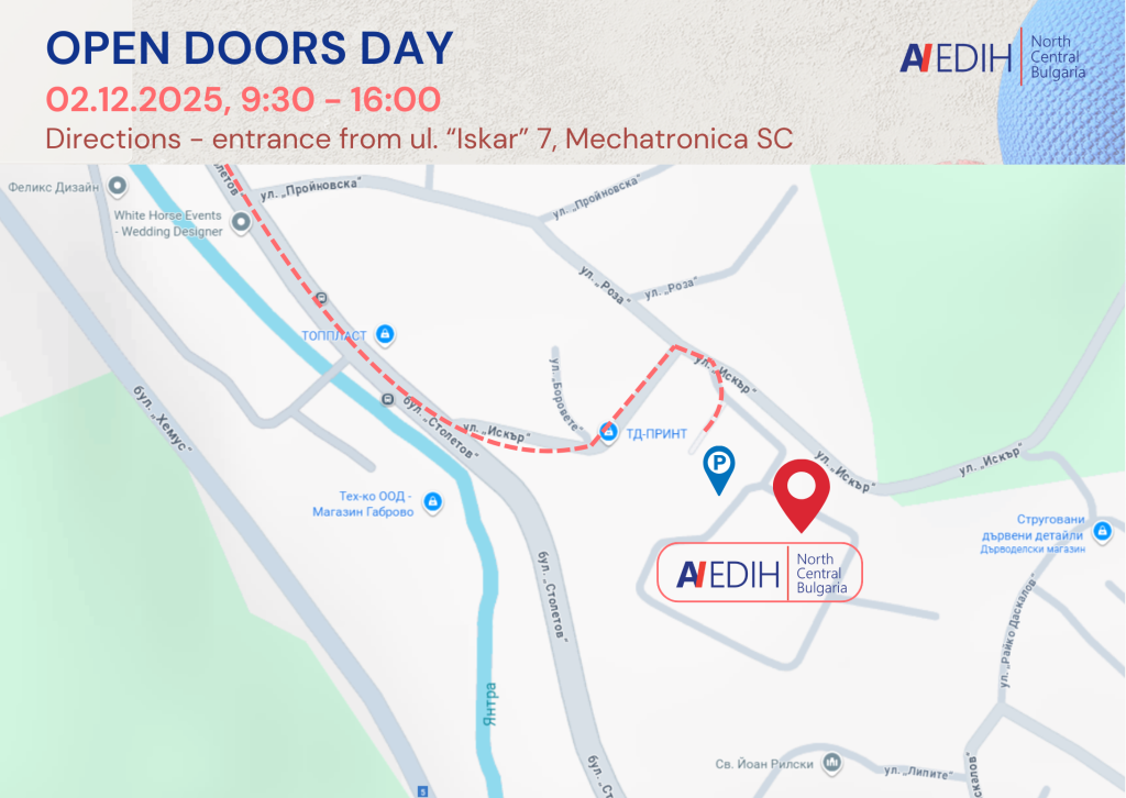 We are excited to welcome you to our Open Day, where we will showcase the technological services, innovation opportunities, and digital transformation solutions offered by EDIH North Central Bulgaria.