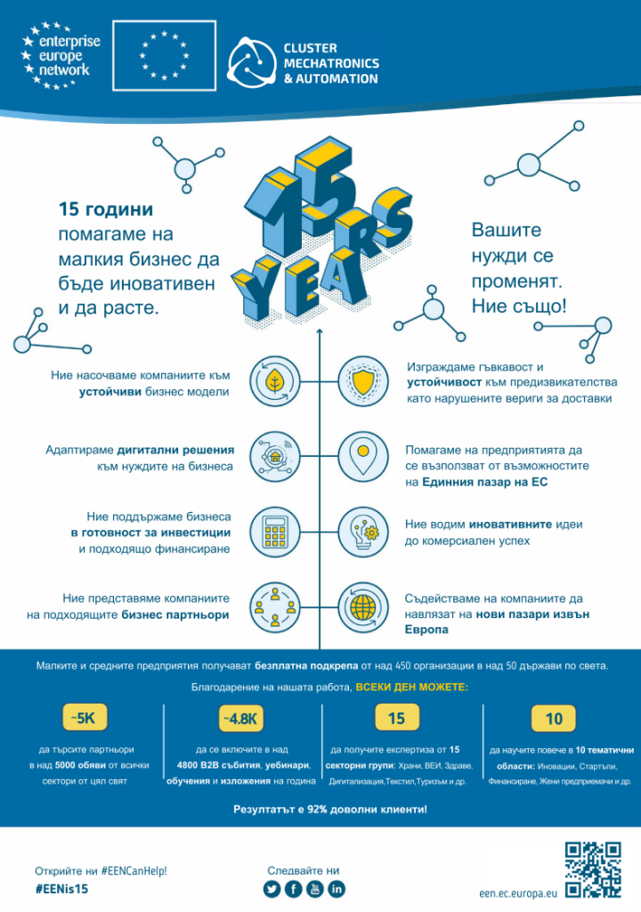 The organizations in Enterprise Europe Network work in a network by creating profiles in a common database for business, technological and project cooperation, actively looking for partners and answering questions of their clients in intranet forums, organizing joint business missions and B2B events.